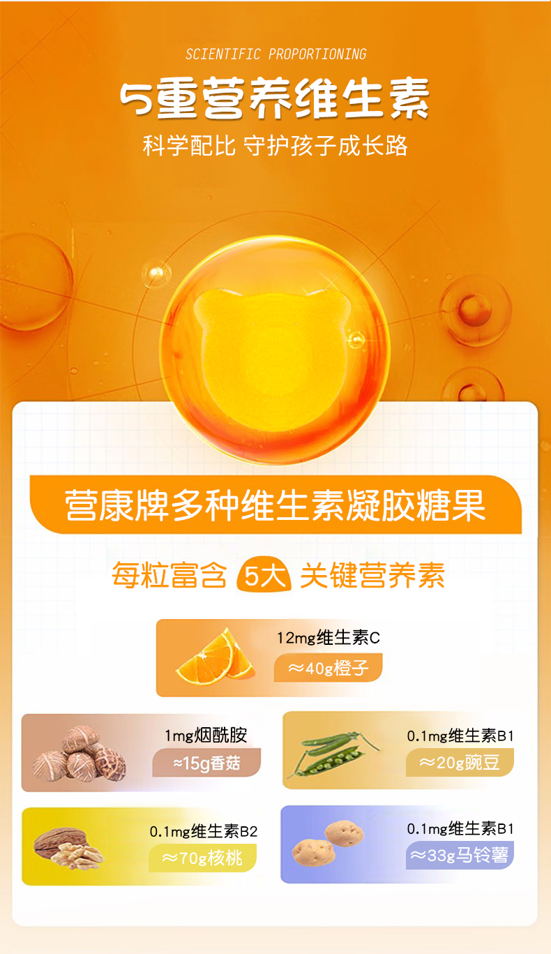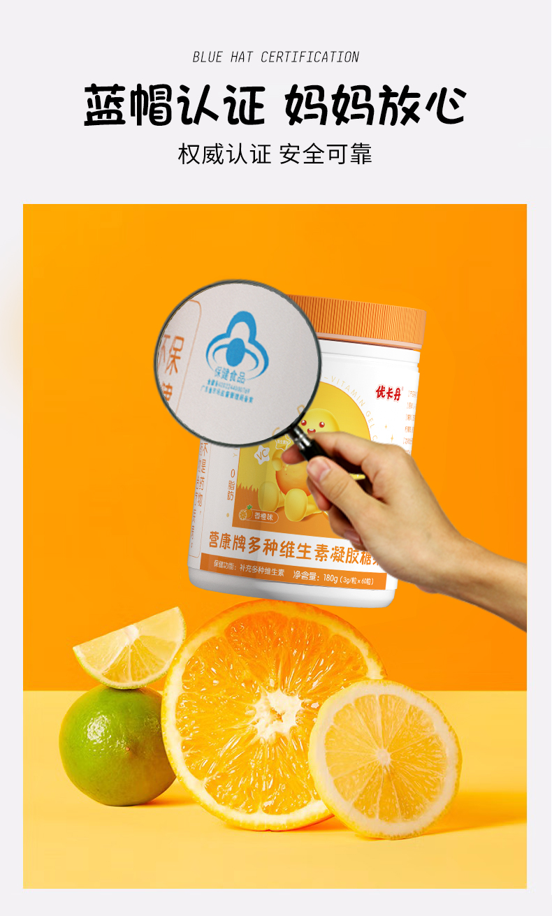 5重營養(yǎng)維生素,科學(xué)配比,藍帽認證守護孩子成長路