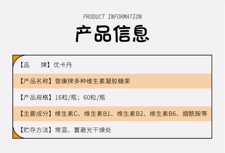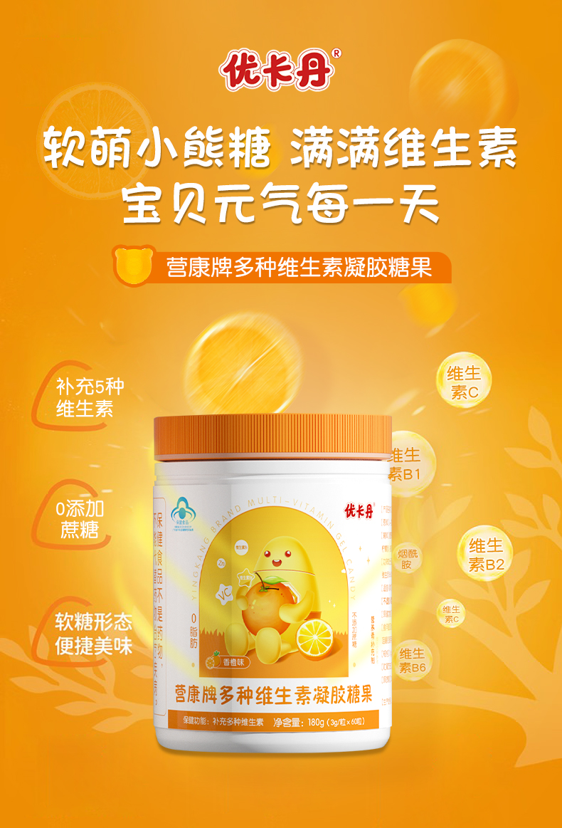 產(chǎn)品名稱:優(yōu)卡丹營康牌多種維生素凝膠糖果