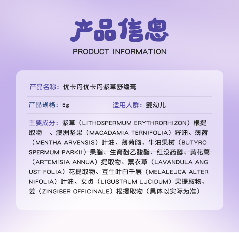 產品名稱:優卡丹紫草舒緩膏