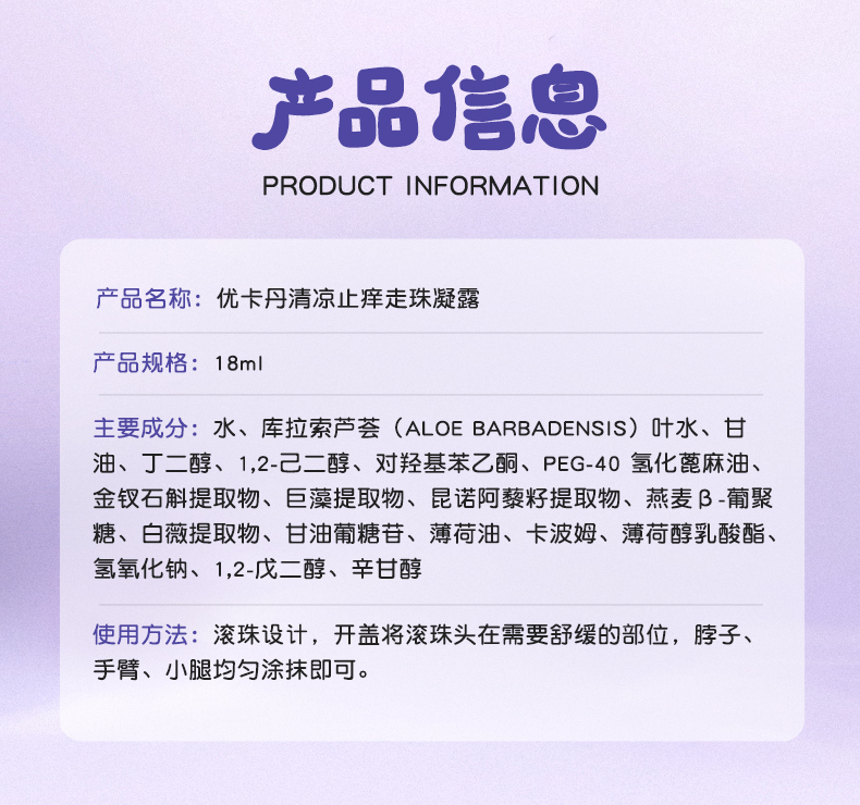 優(yōu)卡丹清涼止癢走珠凝露
