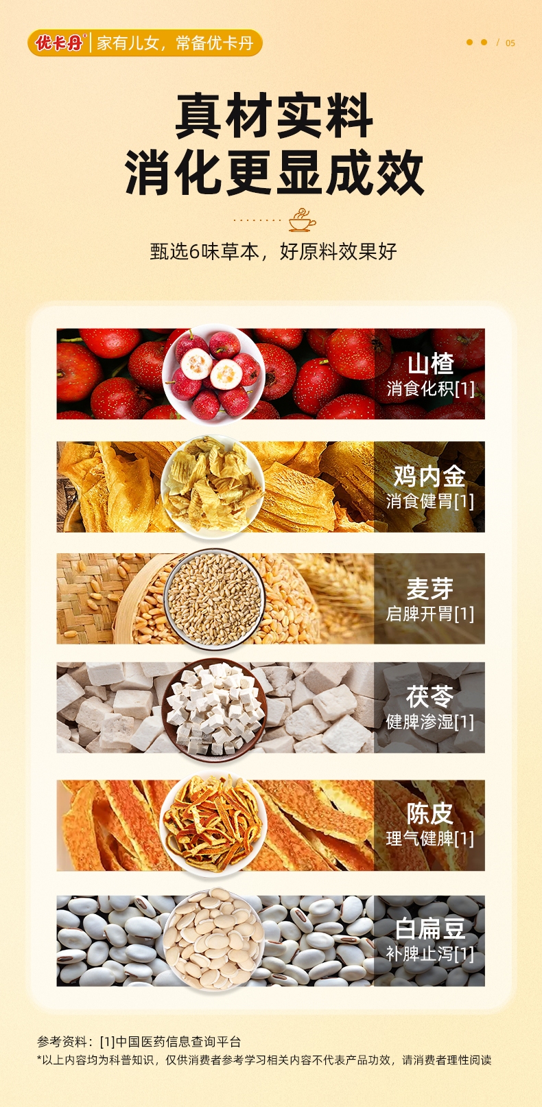 【原料】山楂、麥芽、雞內金、茯苓、陳皮、白扁豆