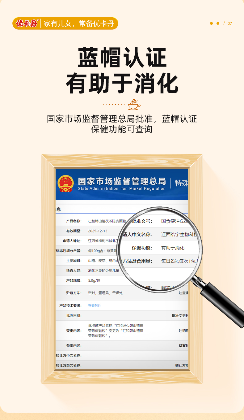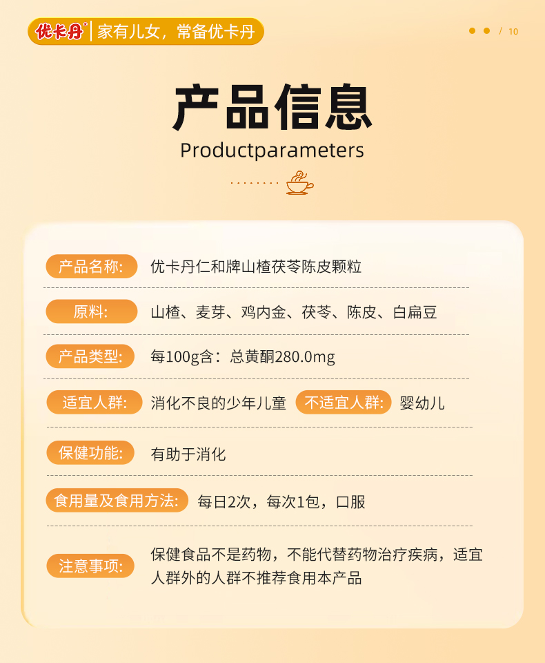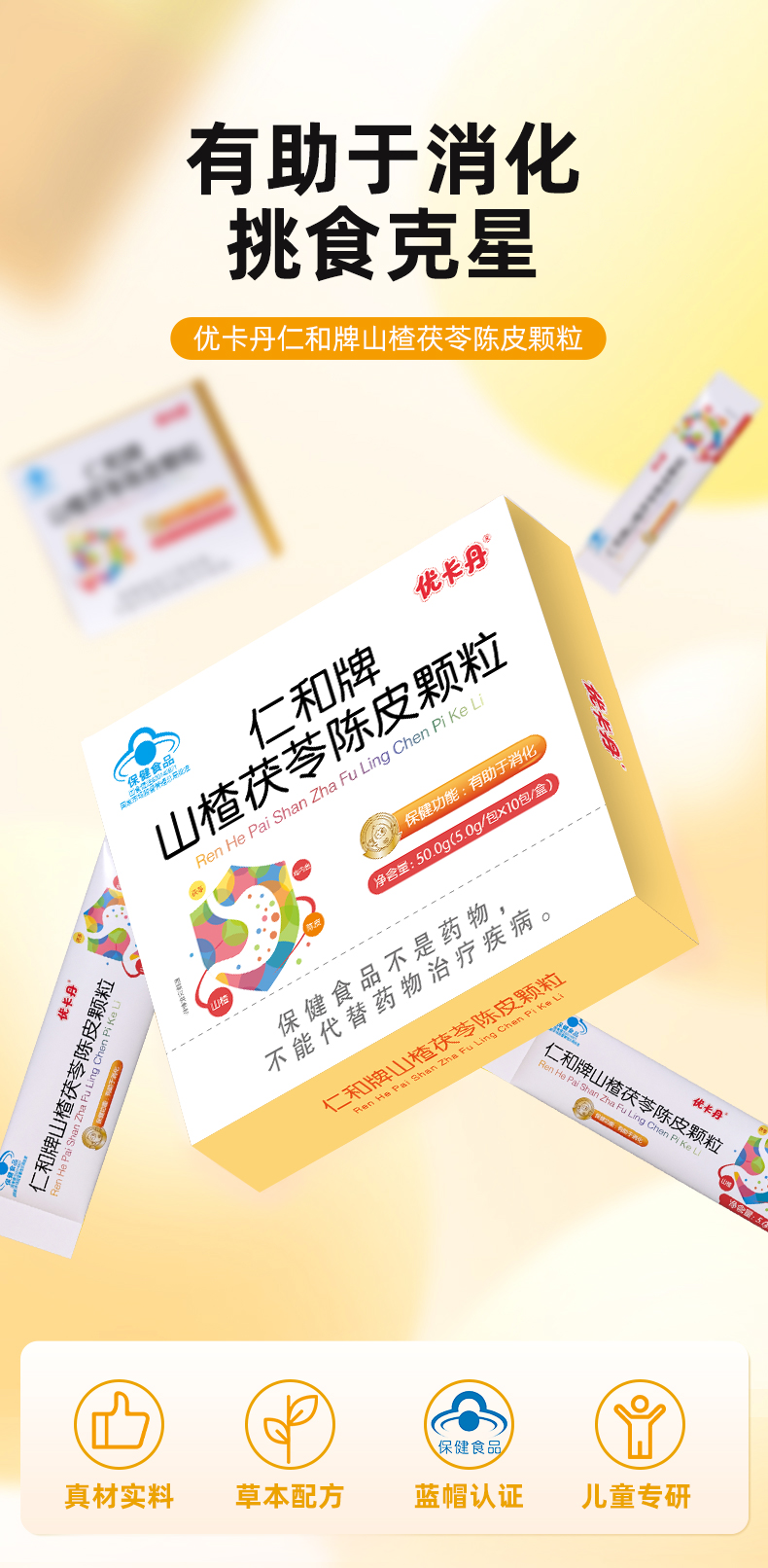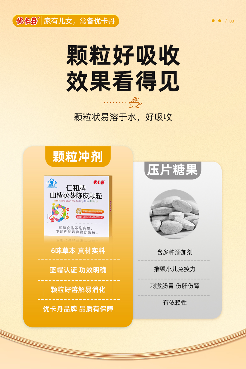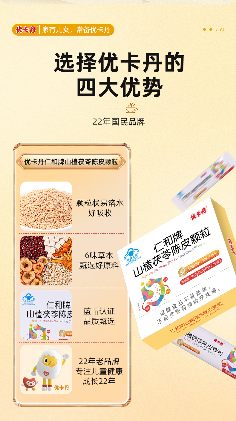 【產品名稱】優卡丹仁和牌山楂茯苓陳皮顆粒