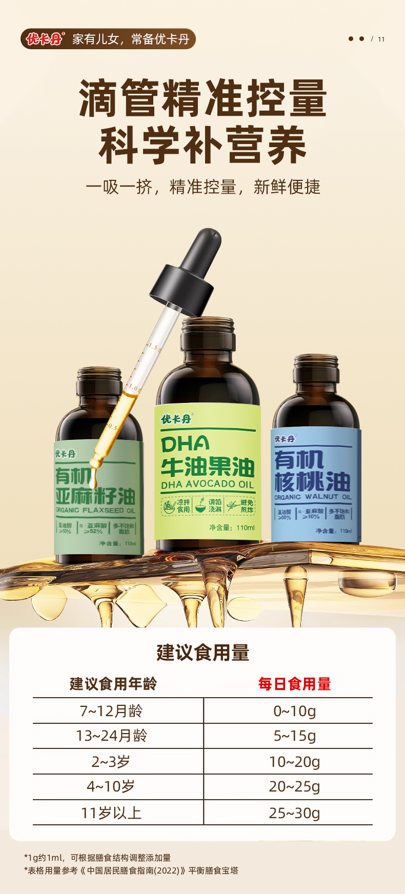 4. 優(yōu)卡丹有機(jī)核桃油+有機(jī)亞麻籽油+DHA 牛油果油