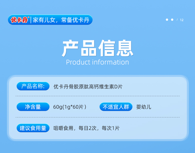 【產(chǎn)品名稱】?jī)?yōu)卡丹骨膠原肽高鈣維生素D片