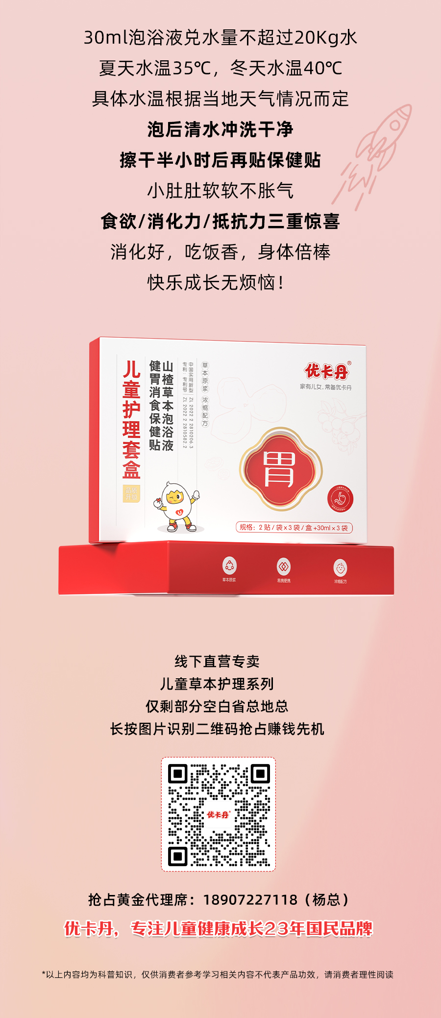【產品名稱】優卡丹兒童草本健胃消食護理套盒(健胃消食保健貼、山楂草本泡浴液)