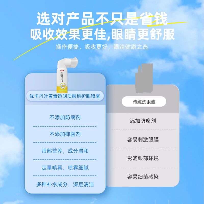 這時候急需噴一噴優卡丹葉黃素透明質酸鈉護眼噴霧,用眼部營養,幫助趕走眼睛的不適。