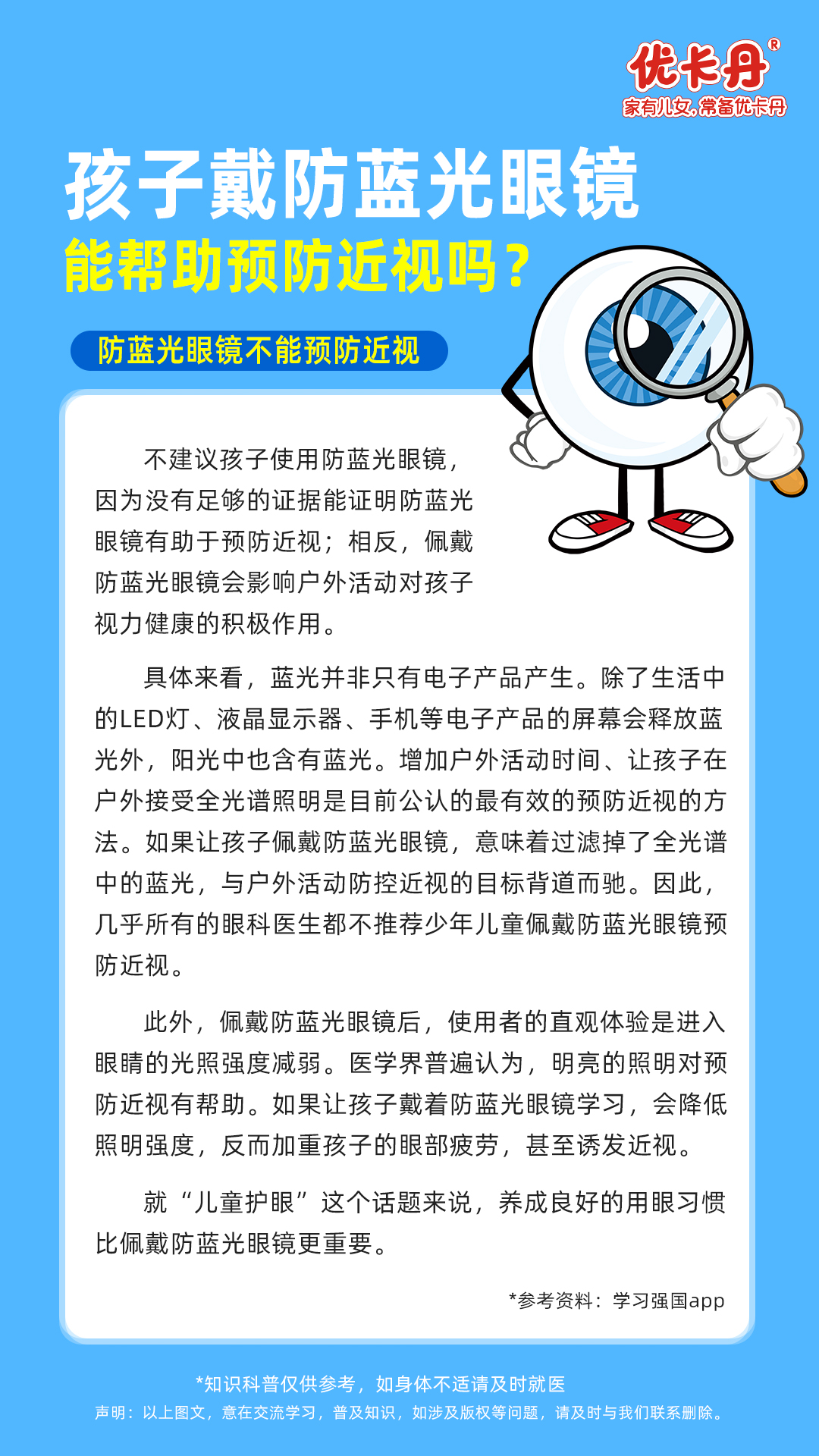 優(yōu)優(yōu)課堂│孩子戴防藍光眼鏡能幫助預防近視嗎?